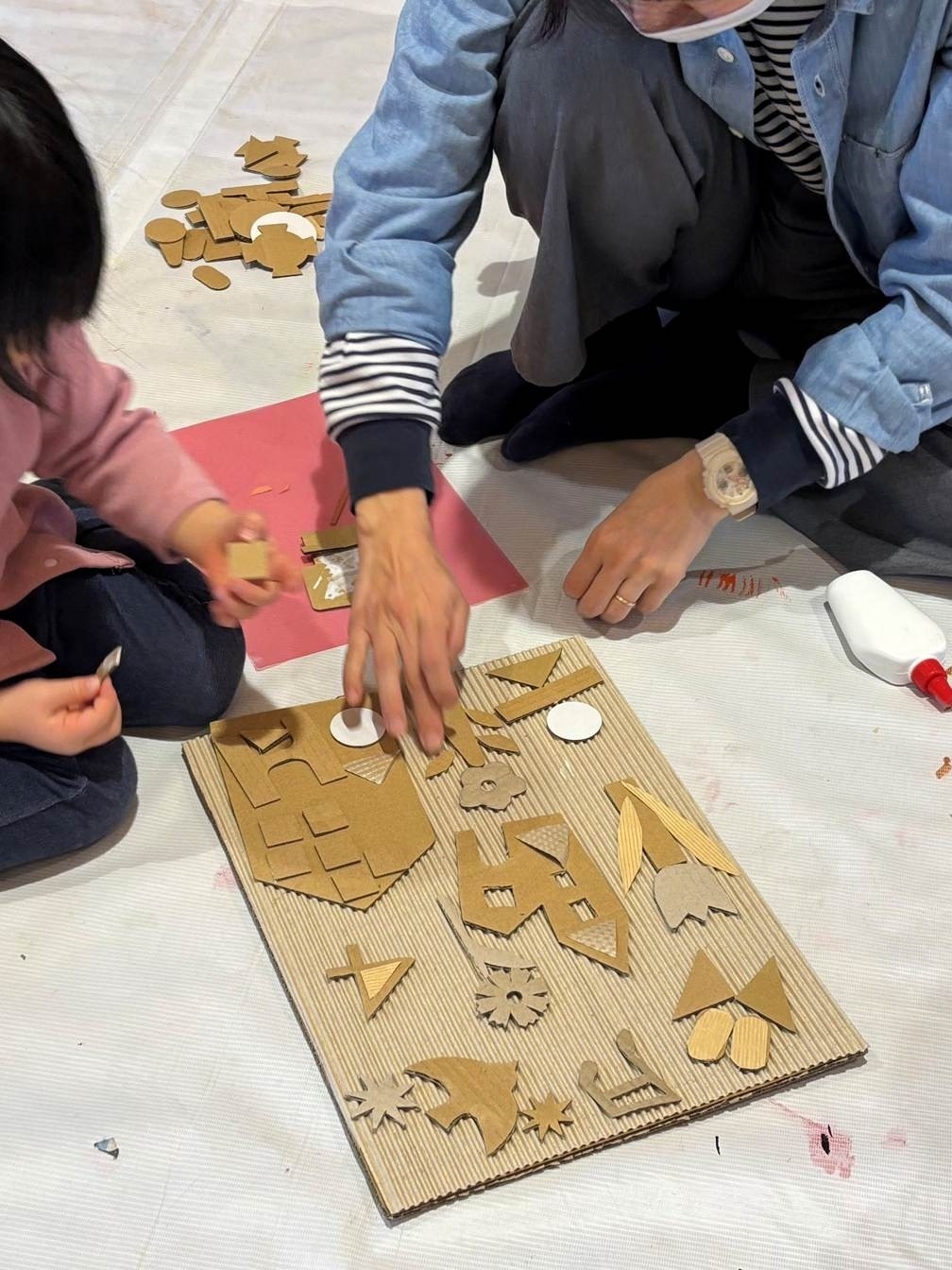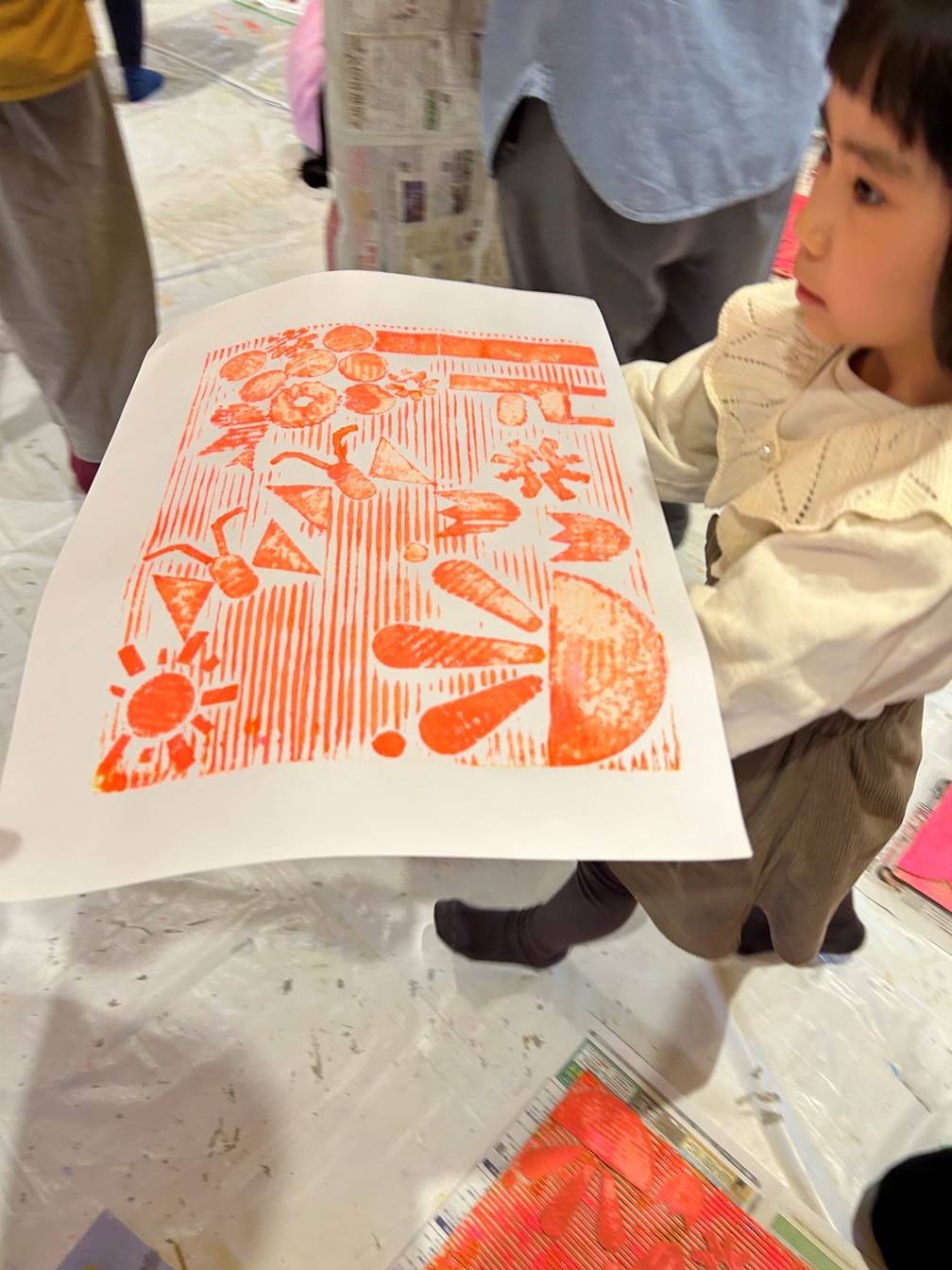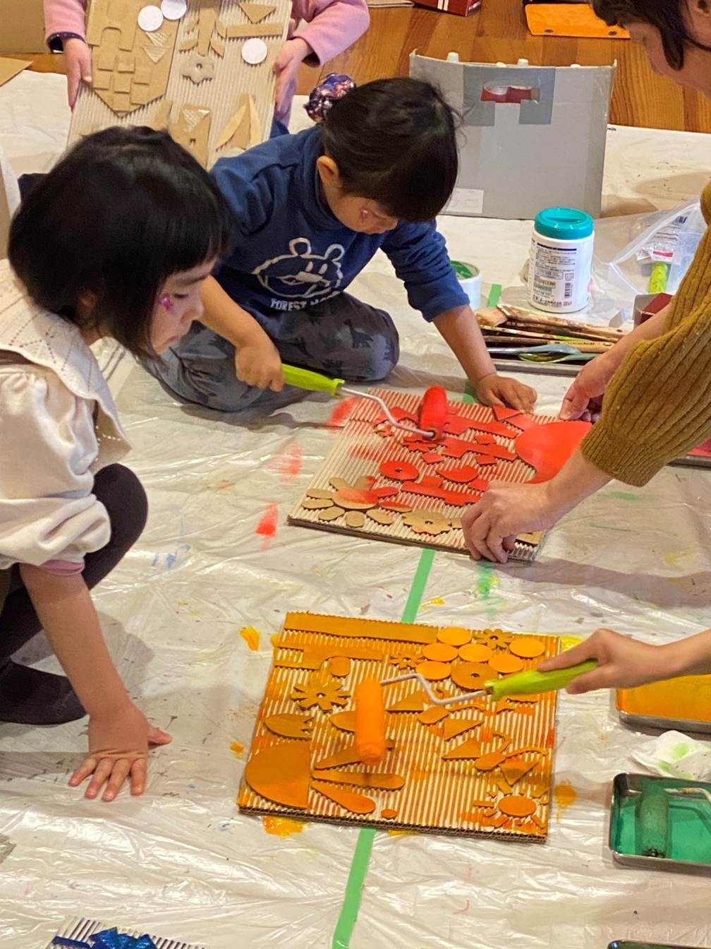 梅田美代子先生による造形ワークショップ~しましまダンボール版画であそぼう~