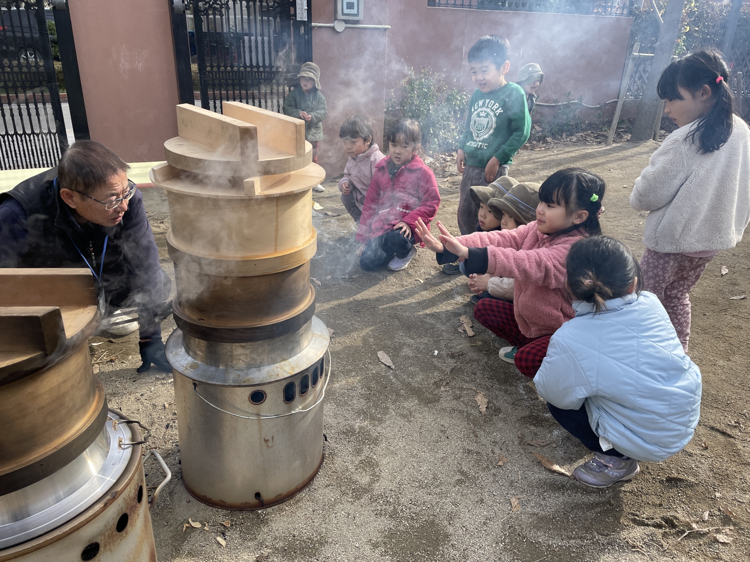 この度いまむらファミリー企画として、幼児クラスで行っている季節の行事「おもちつき」を体験いただける機会を設けました。